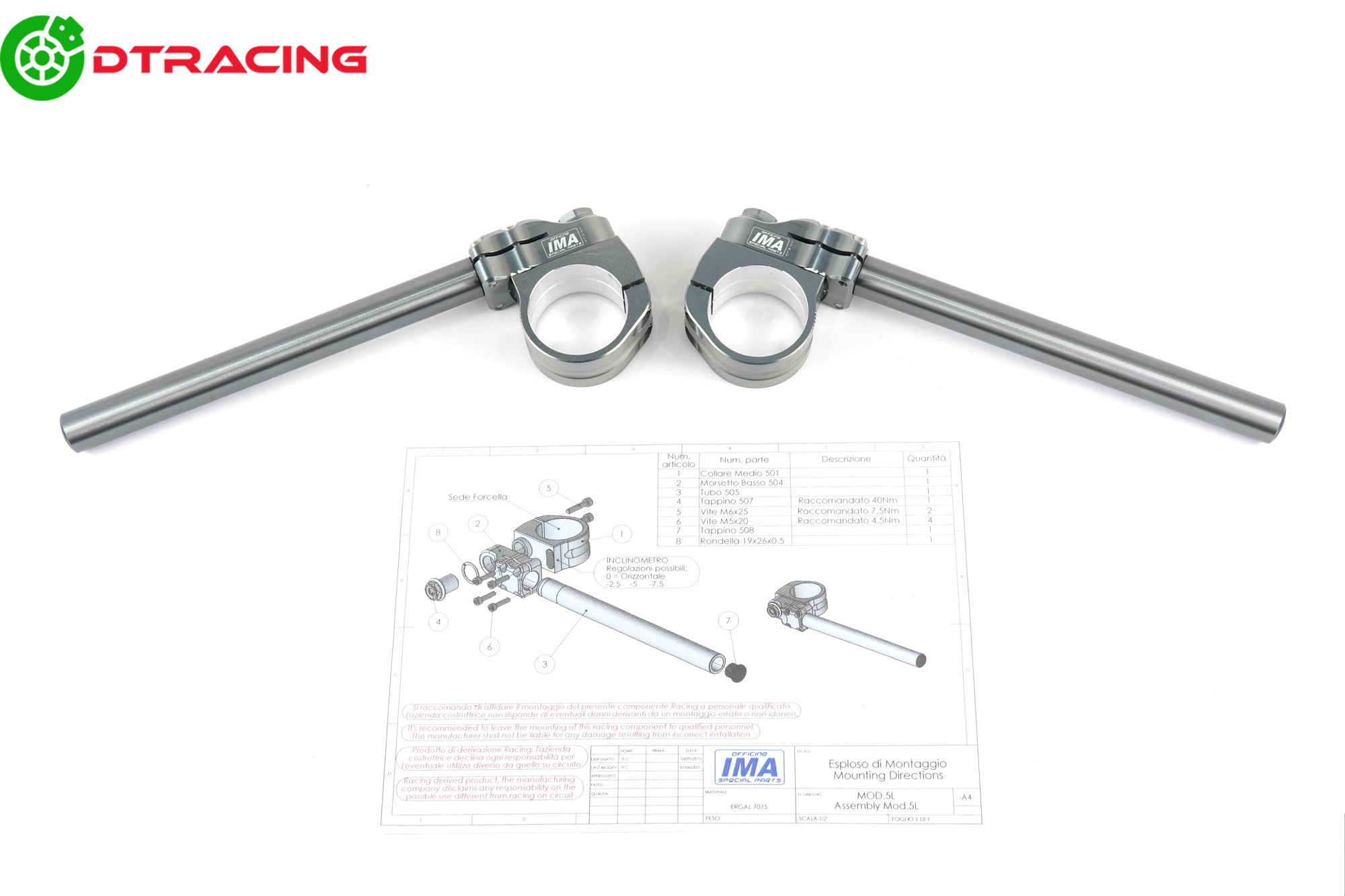 Ghi đông Clip on IMA có thể điều chỉnh góc độ, hướng đến những người đam mê đường đua. Thiết kế lắp ráp thông minh, cho phép thay đổi góc lái 4 vị trí, phù hợp với từng người lái.